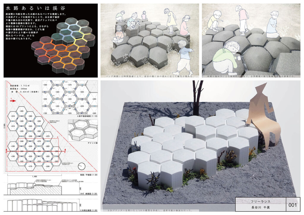 応募作品の中から、次の作品を最優秀賞にきまりました長谷川千眞(フリーランス)さんの作 品 名:「水路あるいは渓谷」の設置向け青年委員会メンバーにてベンチの基礎工事を行いました。